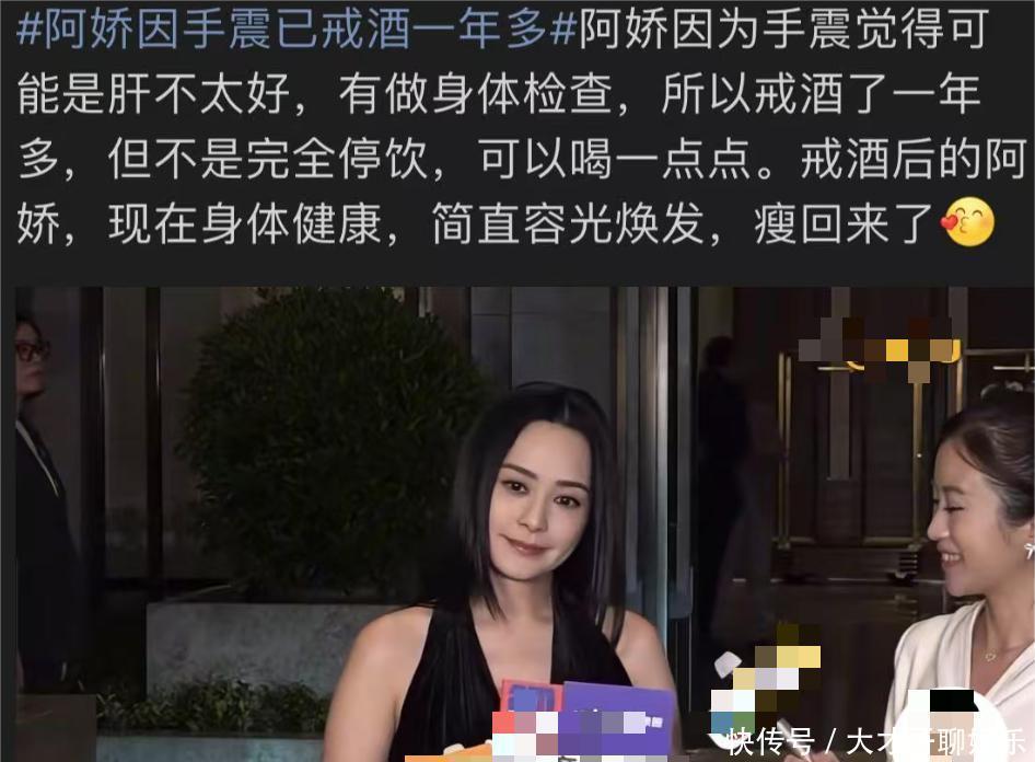 据网友所说,阿娇还是个茅台爱好者,没看出来女神还喜欢喝白酒。看得出来戒了酒的阿娇,整个人的容貌更胜以往了,精神状态也比之前好多了。